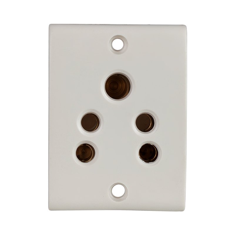 Robust five-pin socket in the Legend range, designed with high-grade polycarbonate for safety and long-lasting usage in power-heavy environments.