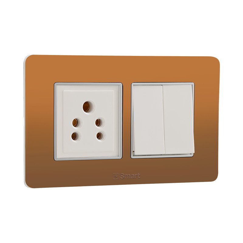 The Copper Mirror Plate series presents a stunning 5-pin socket paired with a classic Alpha White switch. This combination infuses luxury and reliable functionality, designed for homes seeking premium looks and robust performance